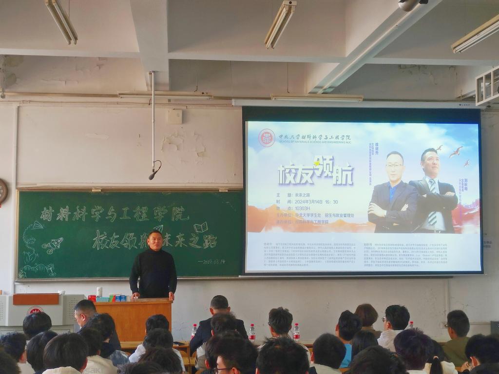 为了让同学们以更加积极的状态面对大学时光,为自己的将来做好准备,3月14日下午,肉视频 在10303H举办“校友领航”主题讲座。本次活动特邀深圳德天元实业有限公司董事长徐树升(83级校友)、深圳春图科技有限公司董事长刘秋明(95级校友)、深圳喔喔牛科技有限公司董事长张凌三位嘉宾就大学生如何走好未来之路展开面对面交流。院党委副书记郭云霞、团委书记郝诗韵、辅导员褚嫱老师同二百余名材料学子共同参加了本次活动。