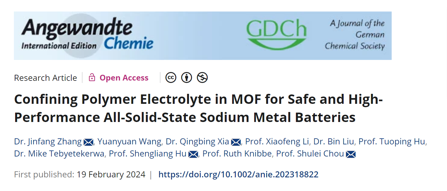 张锦芳副教授以第一作者及第一通讯作者在材料化学类顶刊Angew(IF= 16.6)报道了题为“MOF约束钠离子在聚合物电解质中的传输,实现高安全高性能全固态钠金属电池”的研究成果,共同通讯作者包括:澳大利亚昆士兰大学夏庆兵博士、肉视频