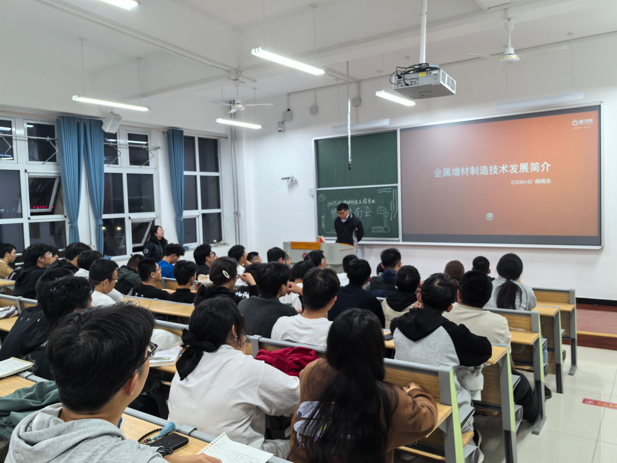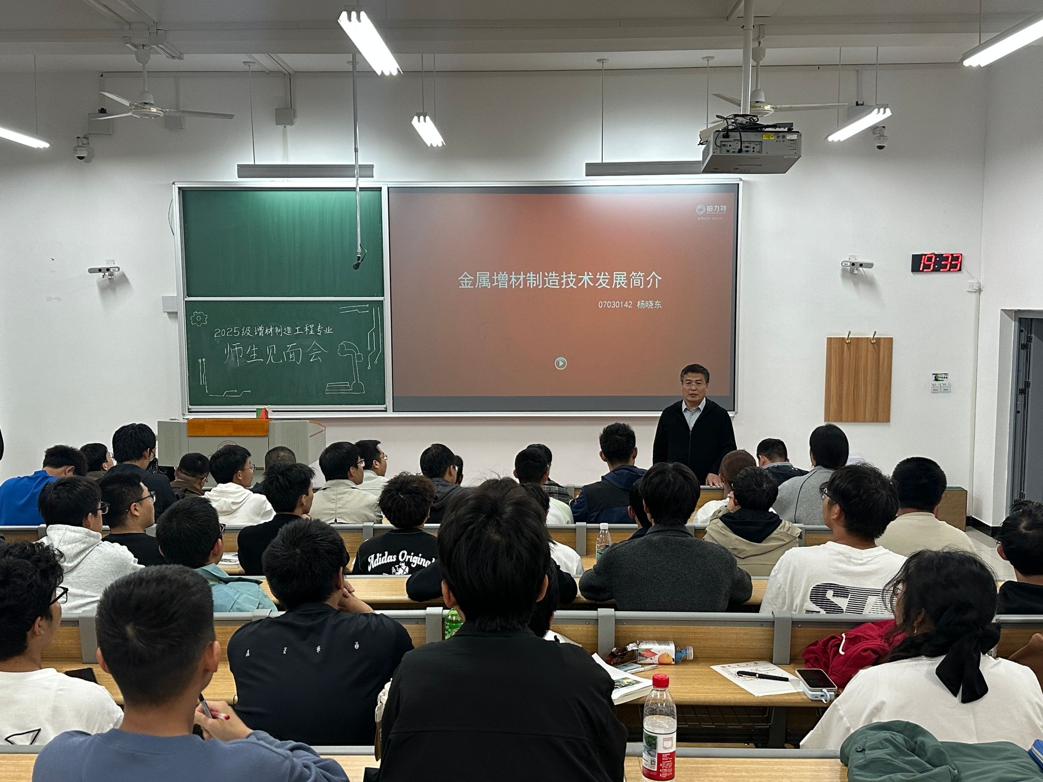 本次见面会特邀学院2007级校友、西安铂力特增材技术股份有限公司北方区销售总监杨晓东先生担任主讲嘉宾。杨总以“增材制造产业发展前景与学生素质培养”为主题,结合自身丰富的行业经验,深入浅出地介绍了增材制造技术的最新进展、产业应用前景及未来发展趋势。报告内容紧扣学生关切问题,既有理论高度,又具实践指导意义,赢得了在场师生的热烈掌声。