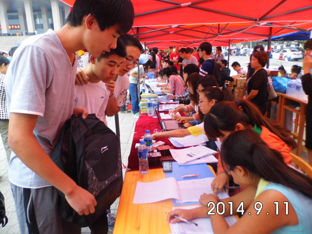 新生在工作人员的指引下办理入学的相关手续以及部分新生的生源地贷款和缴费。随后,在志愿者的带领下安排新生住宿,领取钥匙、办理饭卡等。在前往宿舍的路上,志愿者们向新生详细介绍了途中的教学楼、图书馆、餐厅等地方,并说明了学校各楼房的大致分布,帮助新生更快的熟悉校园。迎新工作者的热情和耐心赢得了家长以及新生的一致好评。