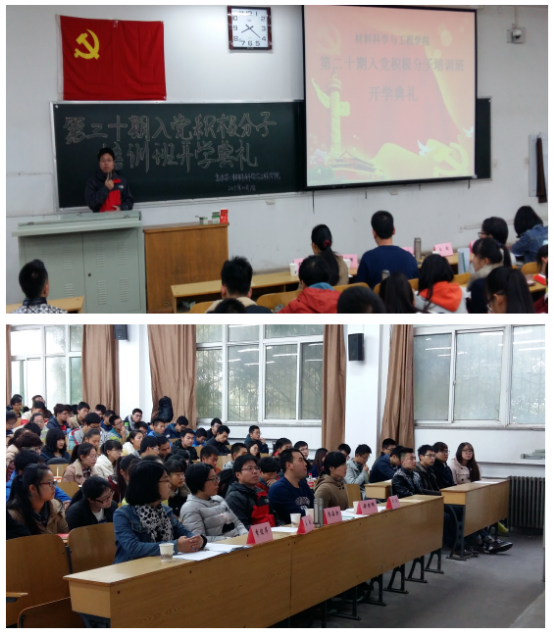 党校在10202H教室举办了第二十期入党积极分子培训班开学典礼。参加本次开学典礼的有院党校副校长、院党委副书记廖海洪,学生党支部书记李艳、毋登辉、王敏及李俊萍,开学典礼由院团委副书记李培真主持。