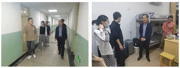 党委书记廖海洪、院长王强、副院长刘斌、各专业负责人、院团委书记郝诗韵等领导老师兵分两路,对本科及研究生新生宿舍进行走访慰问,深入了解新生情况。