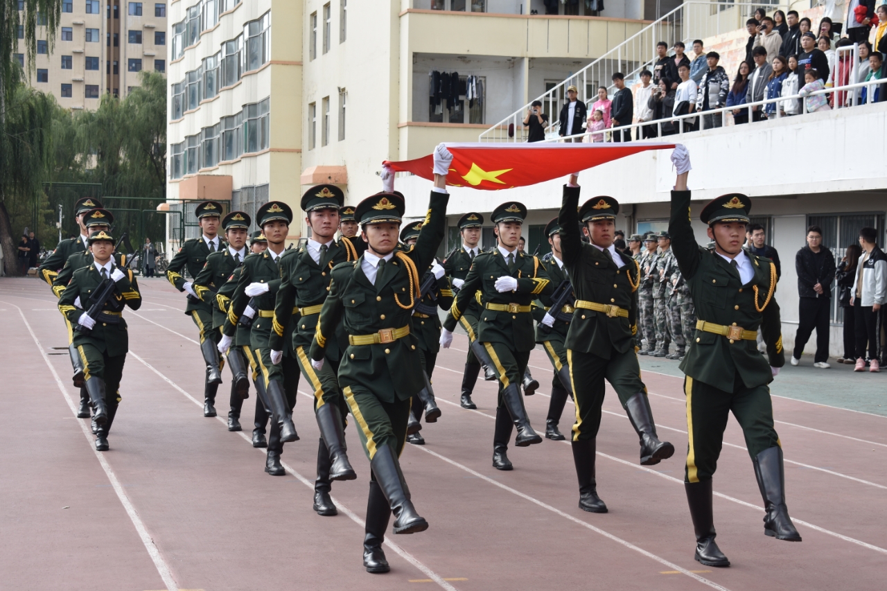 随后,国旗护卫队手持钢枪,迈着铿锵有力的步伐走到升旗台,全体起立,奏唱国歌,体育文化节在庄严的国歌声中拉开了序幕。
