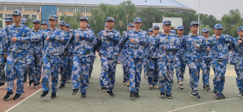 上午九点整,在教官的指挥带领下,各连同学们统一着装倾情投入,14个连队先后出场。停止间转法、正步、起步、跑步,同学们精神饱满、动作规范,整齐划一、吼声震天,尽显军训学员飒爽英姿。