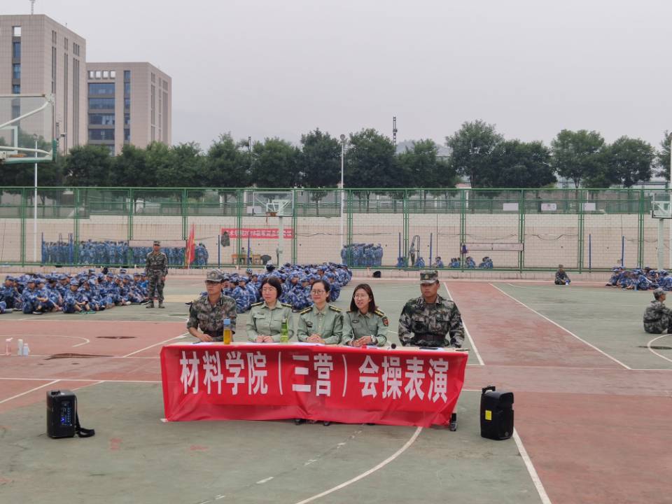 在东区篮球场举行2018级学生军训会演暨拉歌比赛,指导员殷炳叶、王敏、贾越,副营长刘瑞峰、各连长出席了本次比赛。