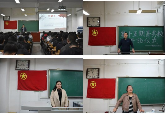 第十五届青共校培训班于14203H教室正式开展。校团委书记顾宁、院党委副书记郭云霞、学生科科长殷炳叶、院团委书记毋登辉参加了本次培训。