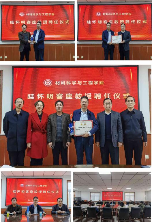 举行眭怀明客座教授聘任仪式。院党委书记廖海洪、院长王强、院党委副书记郭云霞、副院长李迎春、刘斌、教师代表和研究生代表参加了聘任仪式。