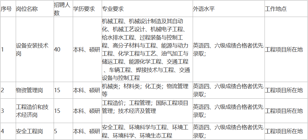 中石化第十建设有限公司2024年度春季招聘简章