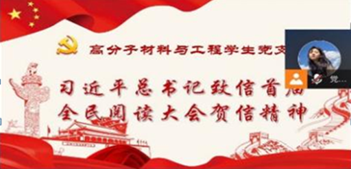 高分子材料与工程学生党支部于2022年5月24日组织党支部全体同志学习了习近平总书记致首届全民阅读大会贺信精神。本次学习采用线上“腾讯会议”集中学习、自学+线上分享、撰写学习心得方式进行。